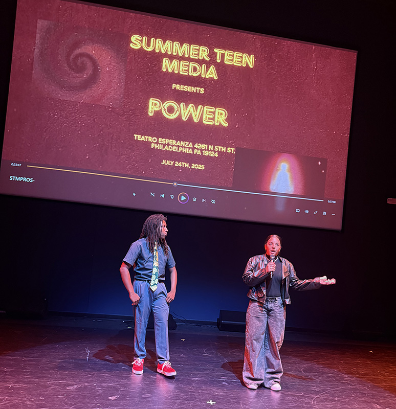 The Summer Teen Media Program—a six-week film intensive—concluded with the annual film screening at the Esperanza Arts Center. Designed to guide students through the complete film making process from script to screen, the program offers hands-on experience in every stage of production as students create three short films over the course of the program.