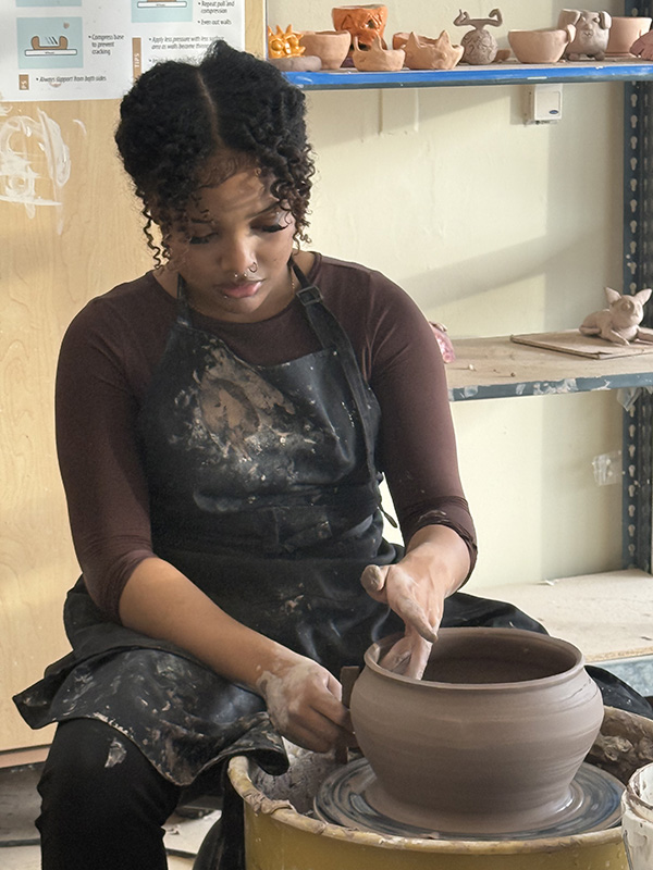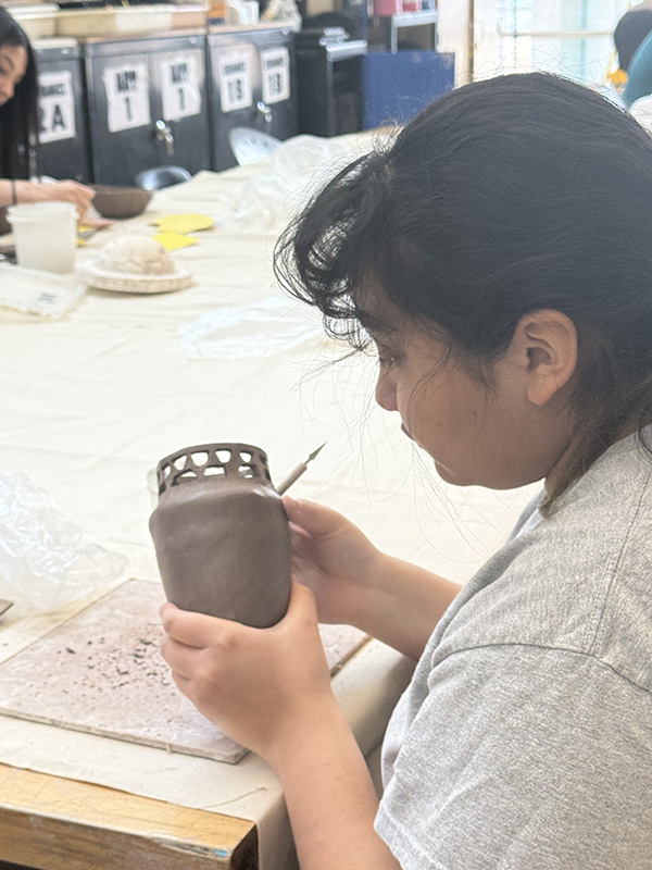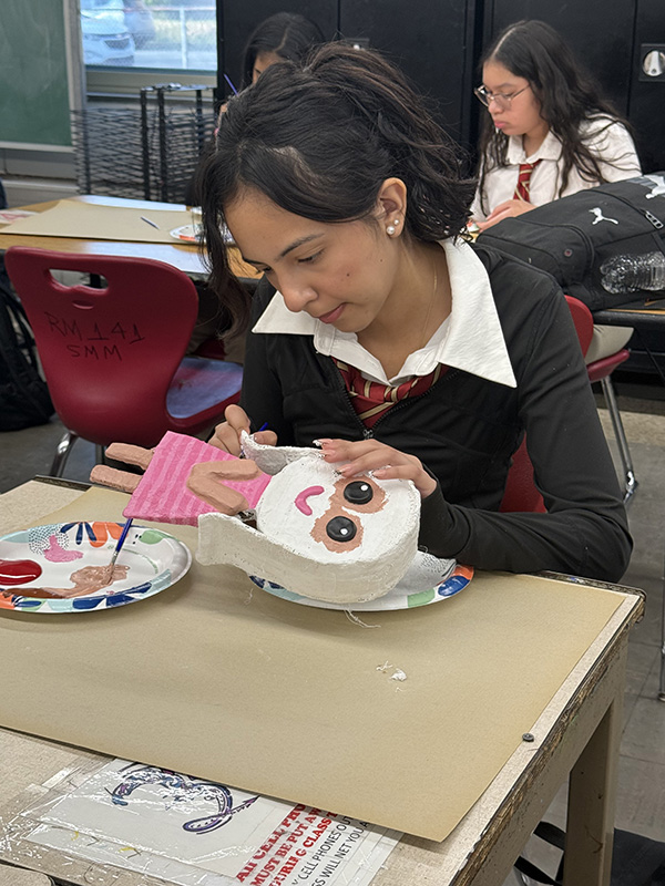 This year, four high schools are participating in the program including, Kensington Creative and Performing Arts, Franklin Learning Center, Northeast High, and Esperanza Academy High School. The professional artists include: Adam Ledford, Sammy Kovnat, Marian Bailey, and Cindy Lozito. To date students have created ceramics vessels, soft sculpture, and clay sculpture inspired by Surrealist artists. Beginning in January 2026, students at Esperanza will collaborate with artist Cindy Lozito. Students will be creating shadow boxes inspired by the work of Joseph Cornell, and other Surrealist-influenced projects.
